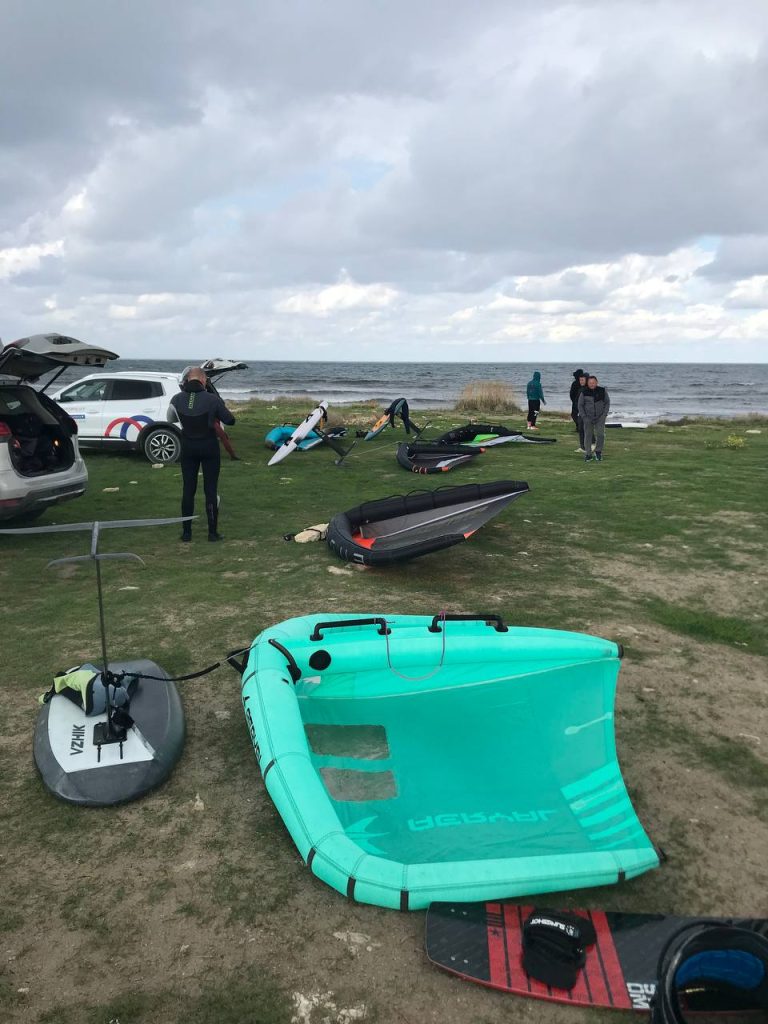 Прогноз погоды подвёл, внезапный дождь, ветер скис. Полностью избавиться от ошибок прогнозов погоды не возможно. Вингфойл каталка продолжалась 2-3 часа.